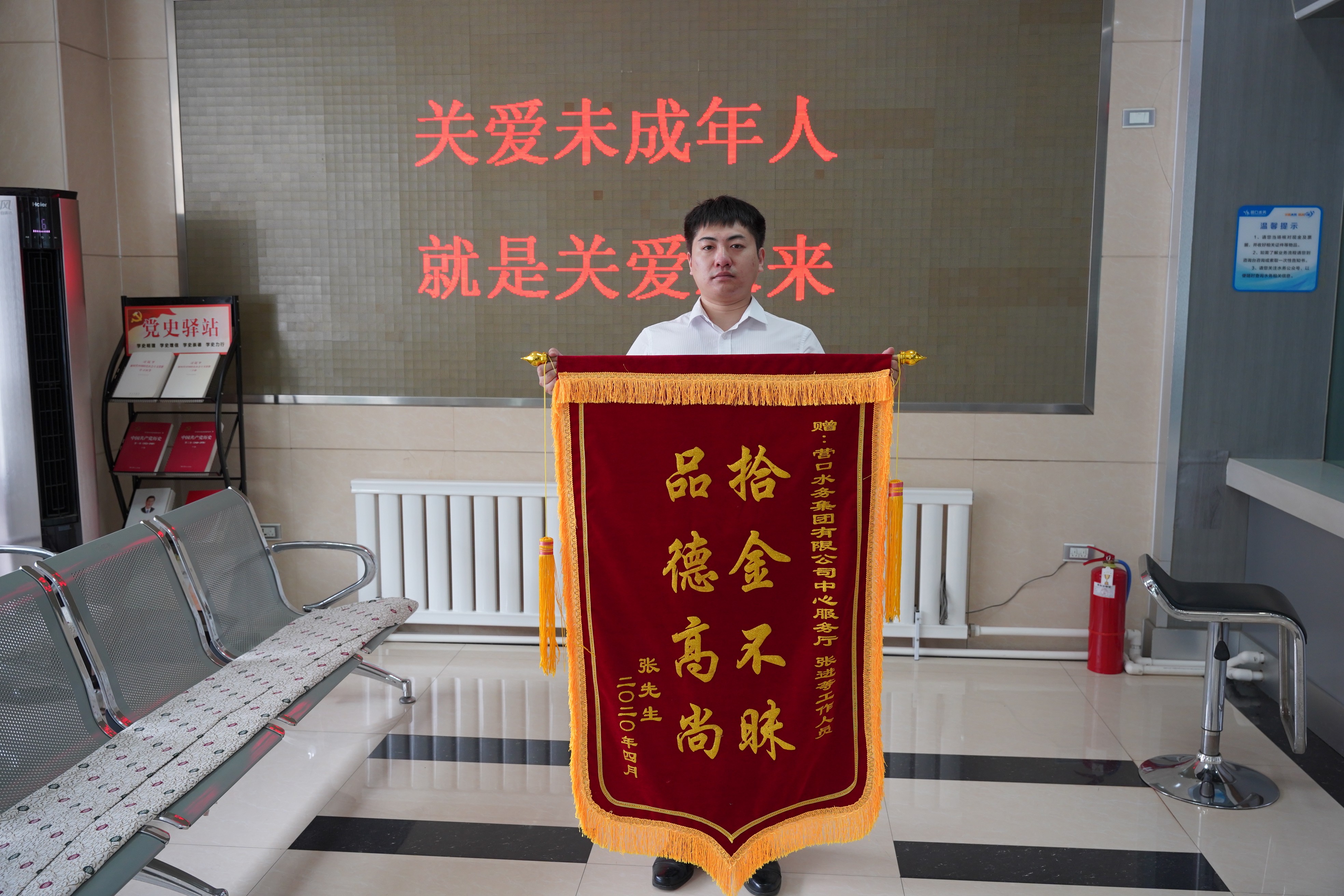2020年4月,用戶張先生來到大廳辦理業(yè)務(wù),辦理結(jié)束后匆忙離廳時不小心將錢包遺落在廳內(nèi)的窗口柜臺。他發(fā)現(xiàn)后,馬上將撿到的身份證與疫情來訪用戶登記本進(jìn)行核對,找到張先生的電話號碼,立刻與該用戶取得聯(lián)系,張先生返回后現(xiàn)場點(diǎn)驗,包內(nèi)大額現(xiàn)金、銀行卡及各類證件均保存完好,用戶十分感動,對他及廳內(nèi)的工作人員表示感謝后,并贈送給中心服務(wù)廳張進(jìn)錦旗一面。