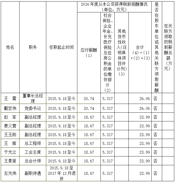 1.上表披露薪酬為我公司高級管理人員2016年度全部應發(fā)稅前薪酬。